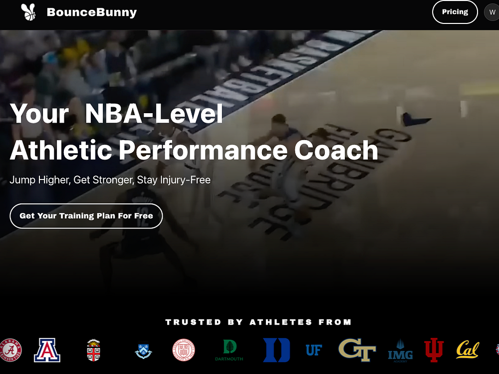 BounceBunny is an AI performance coach that creates personalized basketball training plans to help you jump higher, move faster, and excel on the court. Every plan is customized based on your body metrics, position, available equipment, and injury history. Experience the same quality training that NBA players use at a fraction of the cost. BounceBunny is trusted by over 100 college basketball teams, including UCLA, Cornell, and Northwestern. Train smarter, perform better, and stay injury-free.