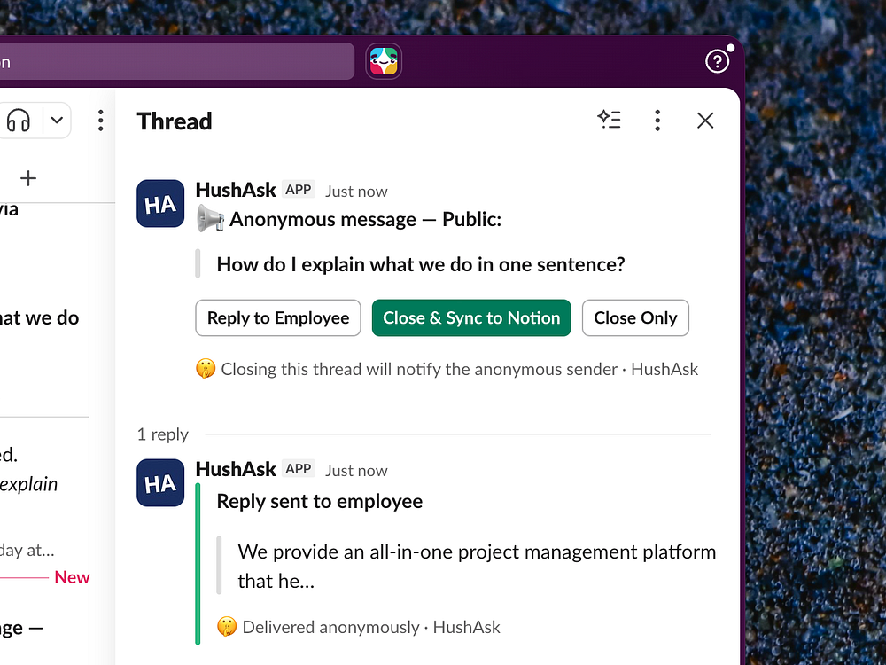 HushAsk – Anonymous Slack questions and feedback backed by cryptography