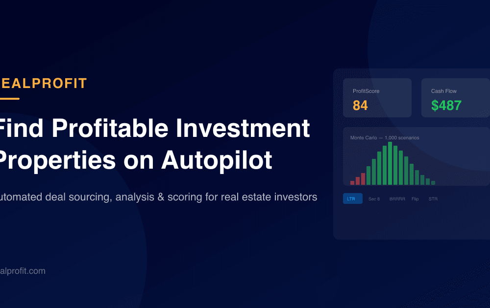 DealProfit is built for investors who've wasted weekends plugging Zillow listings into spreadsheets only to find 19 out of 20 don't cash flow. It auto-sources MLS and off-market properties, runs full underwriting on each with cash flow, cap rate, CoC, NOI, DSCR, plus a 0-100 ProfitScore with Monte Carlo confidence, and ranks every deal against your investor profile — down payment, rate, closing costs, vacancy, PM fees, taxes, rehab assumptions, target returns, and more. Set real-time alerts on the thresholds that matter and get notified the moment a deal matches. LTR and Section 8 at launch; BRRRR, STR, and Fix & Flip on the roadmap.