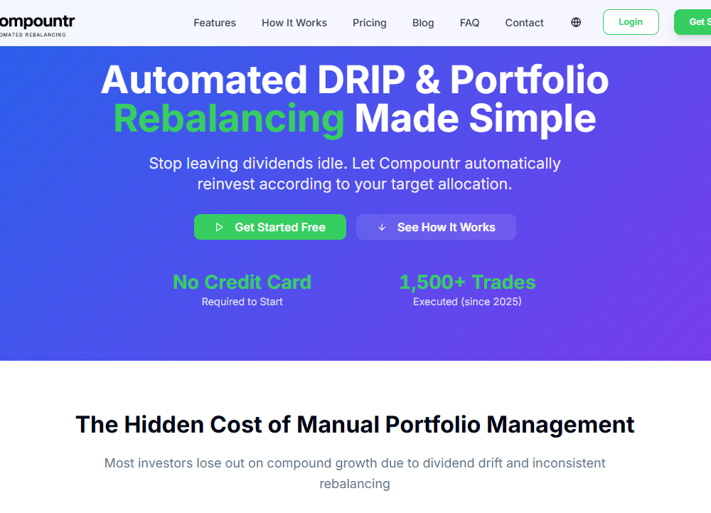 Compountr connects to your broker and automatically reinvests your dividends, runs your DCA schedule, and rebalances your portfolio to match the target allocations you define. No more logging in every month to do it manually. It's useful if you're a dividend investor, working toward FIRE, or just want your investments running in the background without constant attention. Compountr supports Tradier and Alpaca directly, plus 25+ brokers through SnapTrade. Your money stays at your broker, and Compountr only executes trades — nothing more.