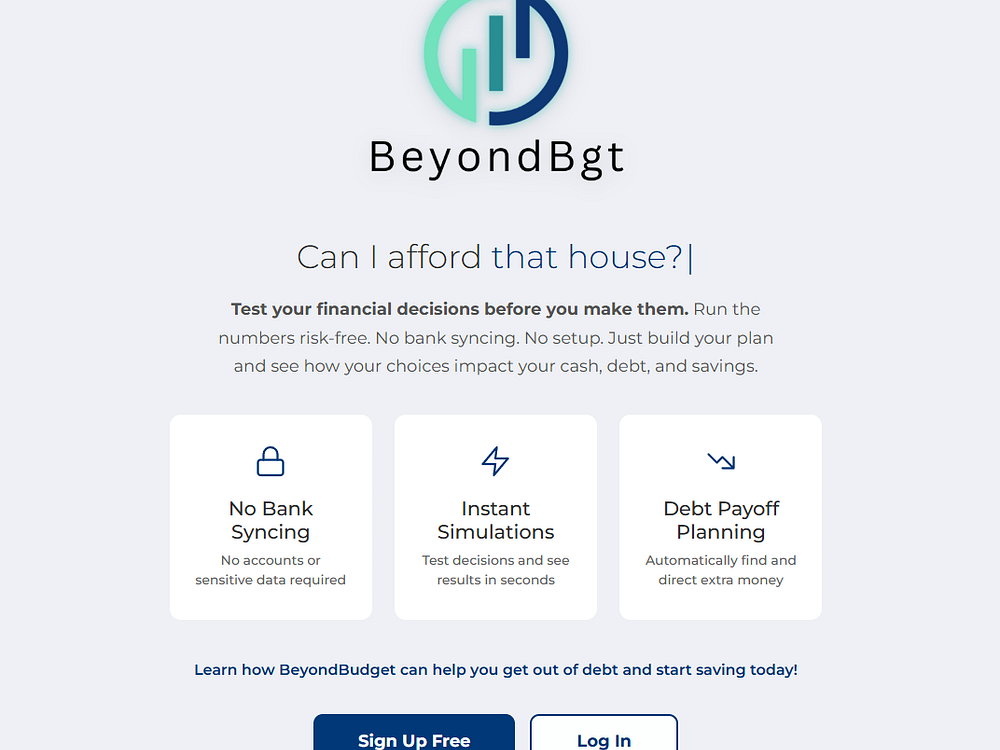 BeyondBudget is a forward-looking budget planner that simulates your finances months and years ahead. Instead of tracking what you already spent, you build a detailed model of your income, expenses, and debt. Then see exactly how your cash, debt balances, and savings change over time. It supports avalanche and snowball debt payoff, calculates how much extra money you have each month for debt or savings, and maintains a safety buffer in your checking accounts. You can model multiple checking and savings accounts, a business account, rewards credit cards, seasonal expenses, and year-over-year cost increases. It's a full simulation of your financial life, not just a spending tracker.