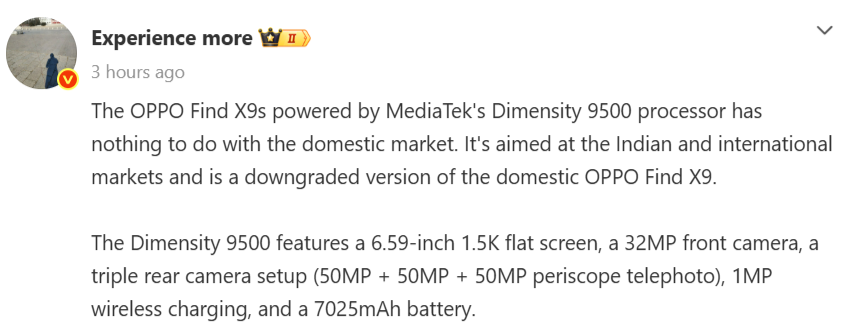 According to the tipster, the Oppo Find X9s will not be released in China, as it is meant for Indian and other markets. As mentioned above, this phone will be powered by the recently unveiled Dimensity 9500s chip.