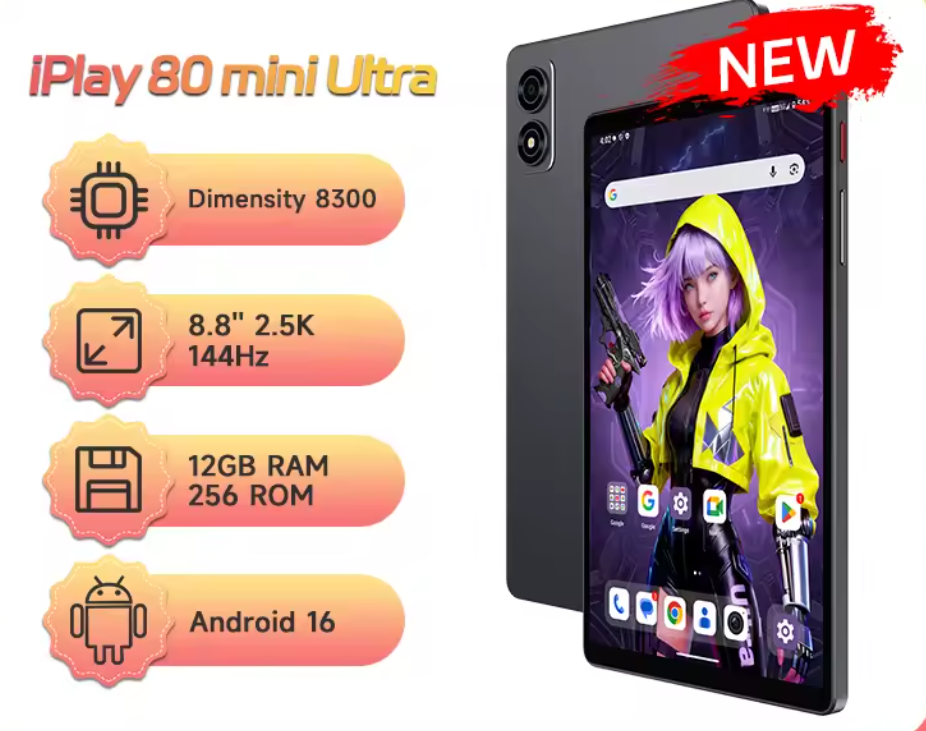 ALLDOCUBE iPlay 80 mini Ultra is a compact yet powerful gaming tablet designed for users who want high performance in a smaller form factor. With a fast processor, smooth high refresh rate display, and 5G connectivity, this tablet aims to deliver a strong balance between portability and power. It is especially appealing for gamers, content consumers, and users who need a capable device on the go.