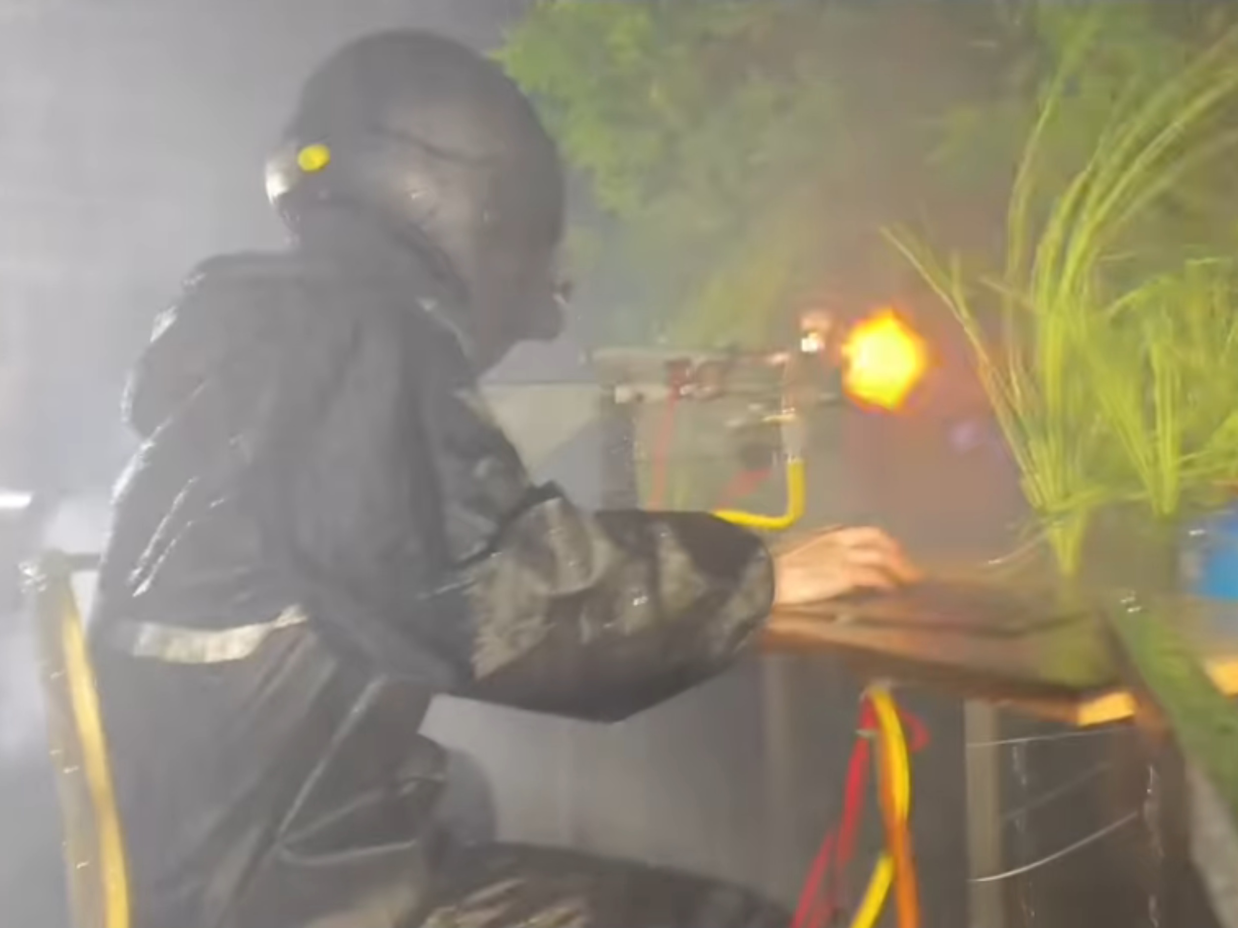 A gamer in China has built a setup that brings in-game sensations such as gunfire, wind and rain into the real world β using small fireworks and an overpowered wind machine. An Instagram video shows the system in action, with the player coming under fire, falling off his chair and nearly having his desk blown over.