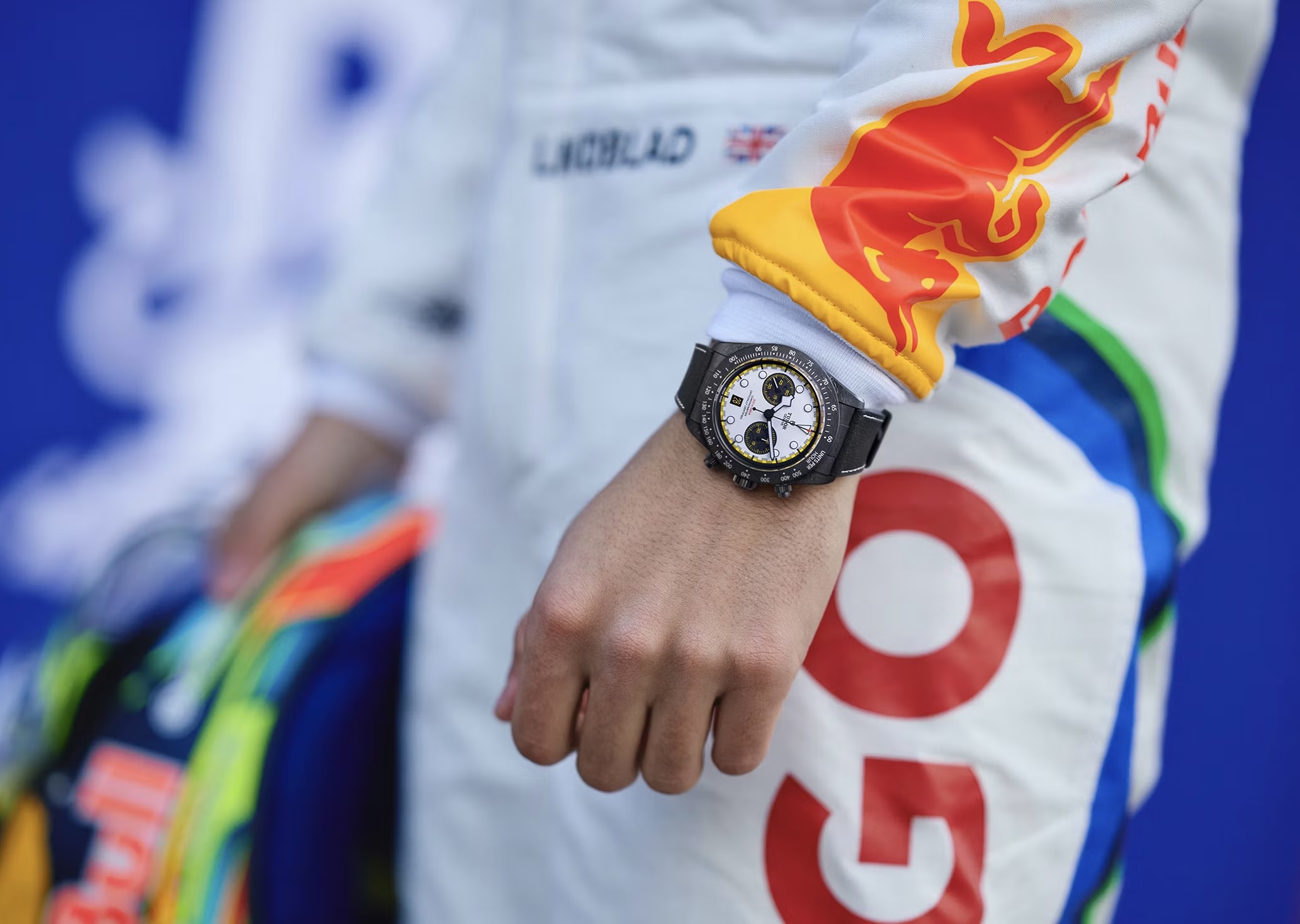 Tudor has officially launched the Black Bay Chrono Carbon 26 with the livery of the VCARB 03 car. A direct successor to last yearβs Carbon 25, the watch comes with a 42 mm carbon fiber case, a fixed tachymeter bezel, a screw-down crown, chronograph pushers, and the same MT5813 automatic chronograph movement with 70 hours of power reserve.