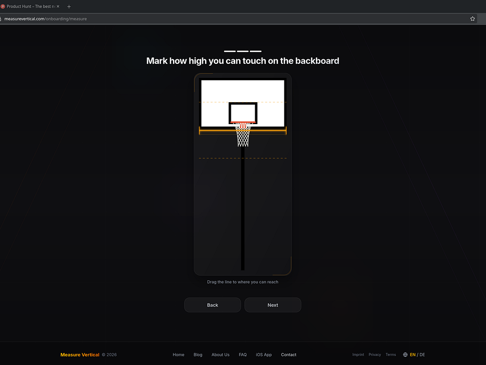 Measure Vertical helps you measure your vertical jump at home in under 60 seconds using only your smartphone. It uses your body measurements to calculate jump height and shows how many inches you are from dunking. You can track your progress and use training guidance to build strength, power, and explosiveness. Whether you play basketball or volleyball, you can quickly establish a baseline, adjust your workouts, and see how close you are to your goal.