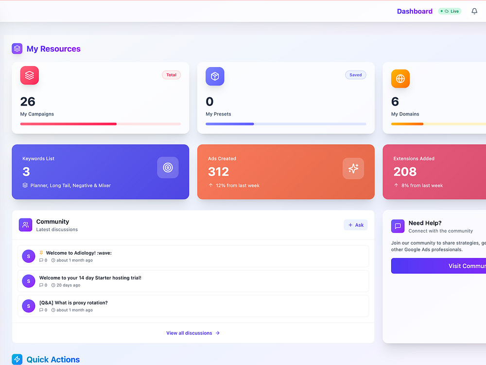Adiology is the complete Google Ads automation platform that lets you build, protect, and monitor from one dashboard. The Campaign Builder generates professional search campaigns with keywords, ads, and landing pages in minutes. Click Fraud Protection automatically blocks bots and competitors that drain your budget. Domain Monitoring ensures your website stays live with SSL, DNS, and uptime alerts. You can achieve agency-level results without the $2,000/month price tag.