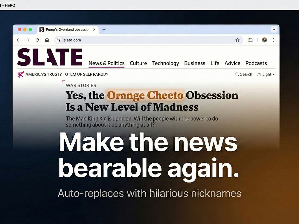 You can choose from seven built-in nicknames, rotate them daily, or pin a favorite. Install it from the Chrome Web Store, toggle it on, and read the news with a lighter mood while staying informed.