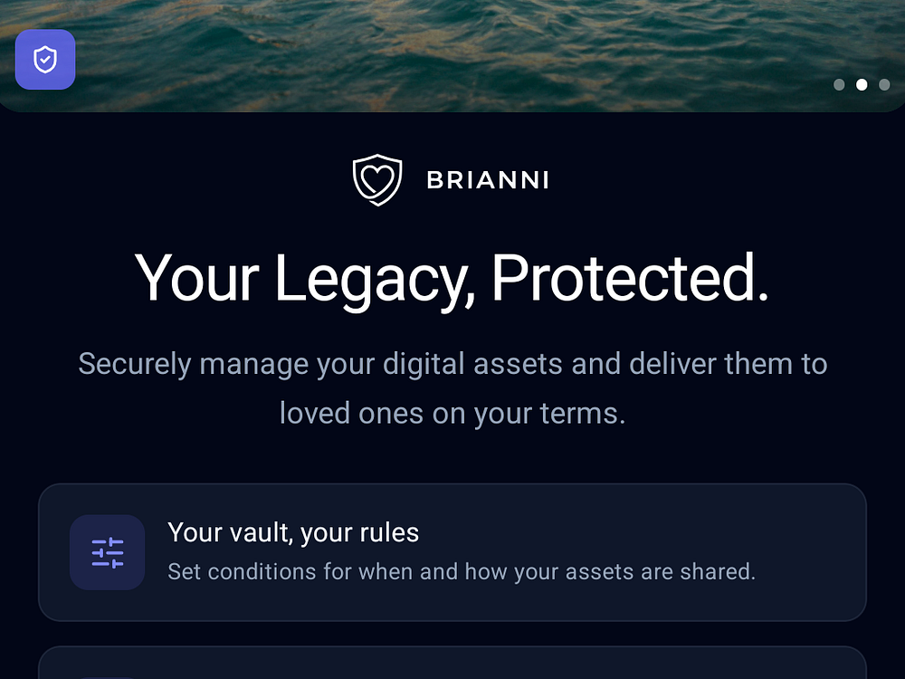 Brianni is encrypted cloud storage with programmable conditional delivery. Store photos, documents, passwords, and messages in a zero-knowledge vault with client-side encryption. Package content for anyone and choose when it unlocks using dates, milestones, recurring schedules, triggers, or AND/OR logic. Recipients verify by email and decrypt in the browser without an account or app. Access your vault on the web, iOS, and Android.