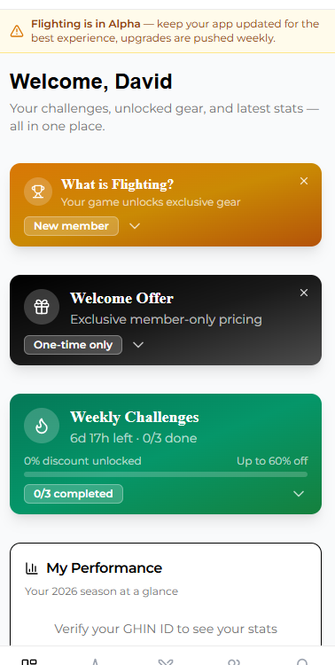 Flighting is a performance-based golf platform that turns your game into progress and rewards. Log rounds, sync your official USGA GHIN handicap, and take on weekly challenges and milestones to climb leaderboards. As you improve, you unlock exclusive Flighting apparel, gear, and member-only pricing you can't get anywhere else. Compete against your club, your flight tier, and your friends, all backed by verified results.