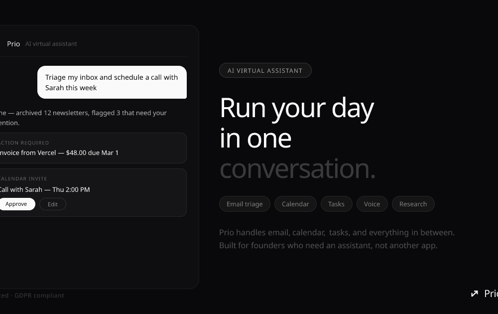 Prio – Run your business while an AI handles email, calendar, and tasks