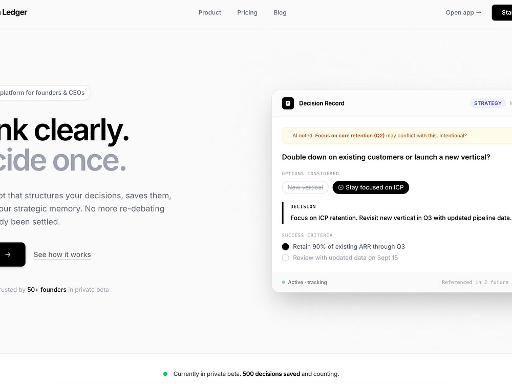 Decision Ledger β Structure your decisions, save them, and build strategic memory