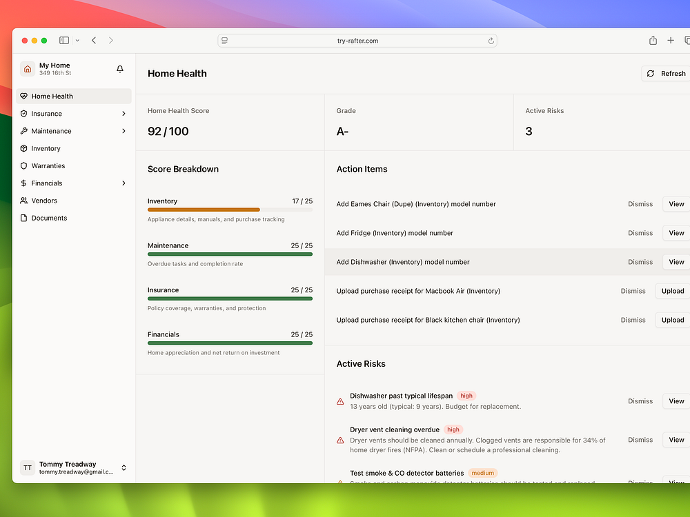 Hearthward builds a complete home maintenance plan from a few details about your place. It generates seasonal schedules, room-by-room care, and recurring tasks tailored to your climate, property, and pets. You can invite housemates or family to share the load, claim tasks, and keep everything on track. Unlike blank to-do boards, it comes with the right tasks and how-tos so you never wonder what's next.