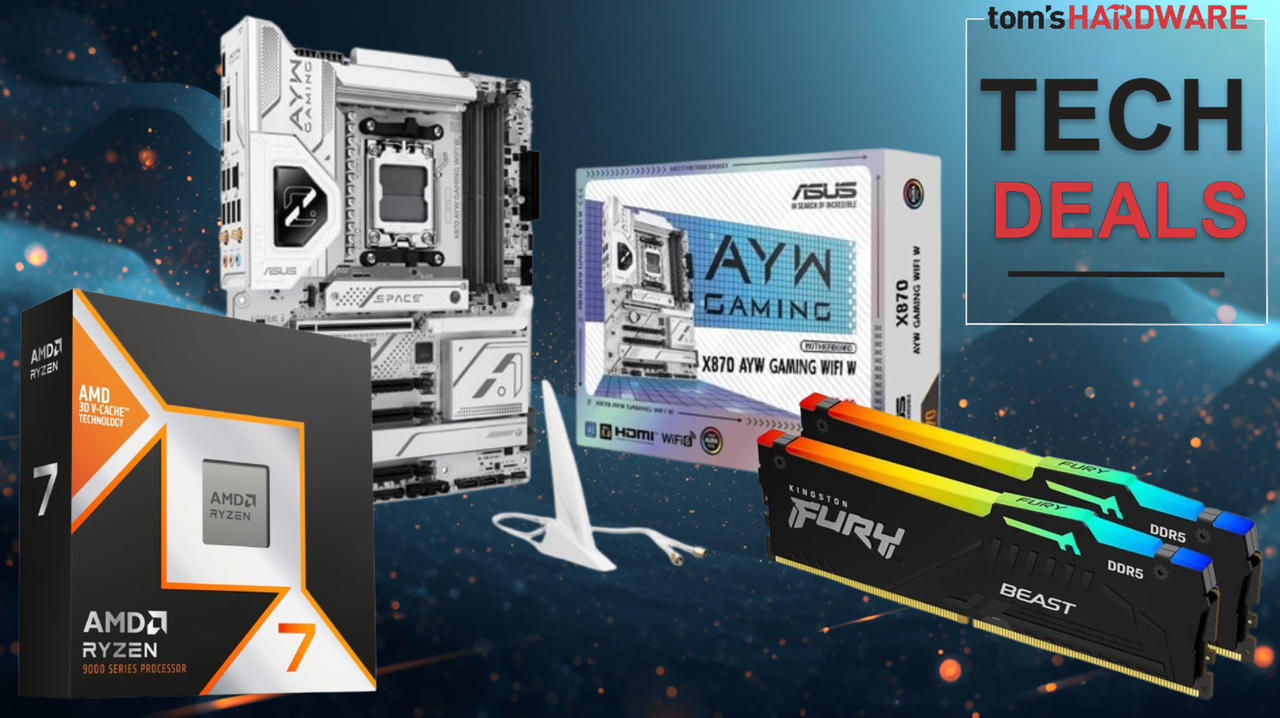 Get an awesome deal on this Newegg combo - $949.99 gets you the fastest gaming processor around, a Ryzen 7 9850X3D, 32GB of dual-channel DDR5 Kingston RAM, and a solid Asus X870 AYW Gaming Wifi motherboard