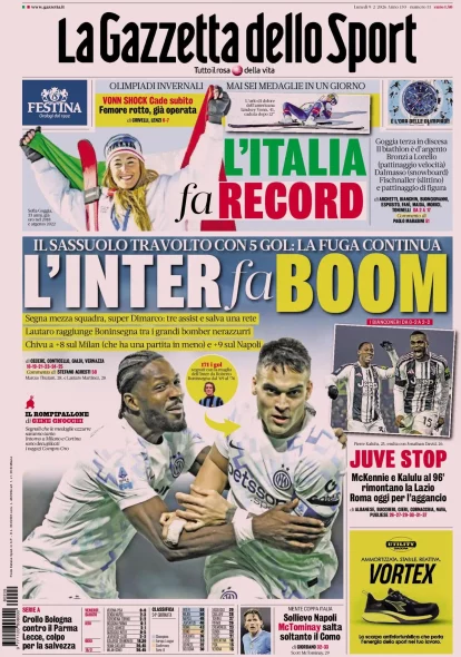 The opening ceremony of the 2026 Milan Cortina Winter Olympics will take place today at the Stadio Meazza in Milan, ‘the final milestone’ for ‘the stadium that Milan and Inter are about to leave,’ wrote Gazzetta.