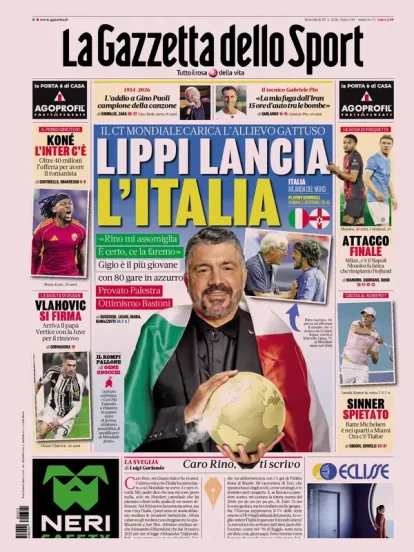 The legendary coach, who led Italy to World Cup glory in 2006 with Gattuso as one of the cornerstones of his squad, took to the pages of La Gazzetta dello Sport to offer an unusually personal and emotional tribute to his former midfielder turned manager.