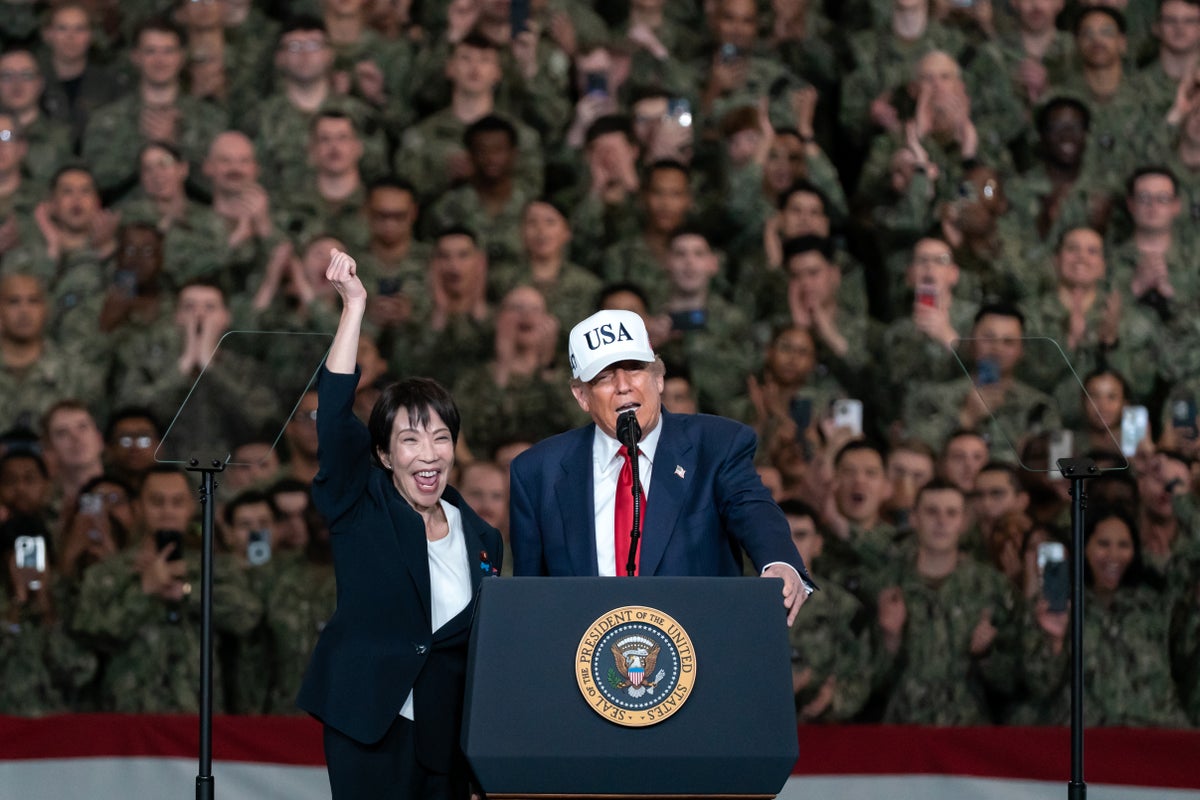 Bizarre remarks came during rambling speech aboard forward-deployed aircraft carrier