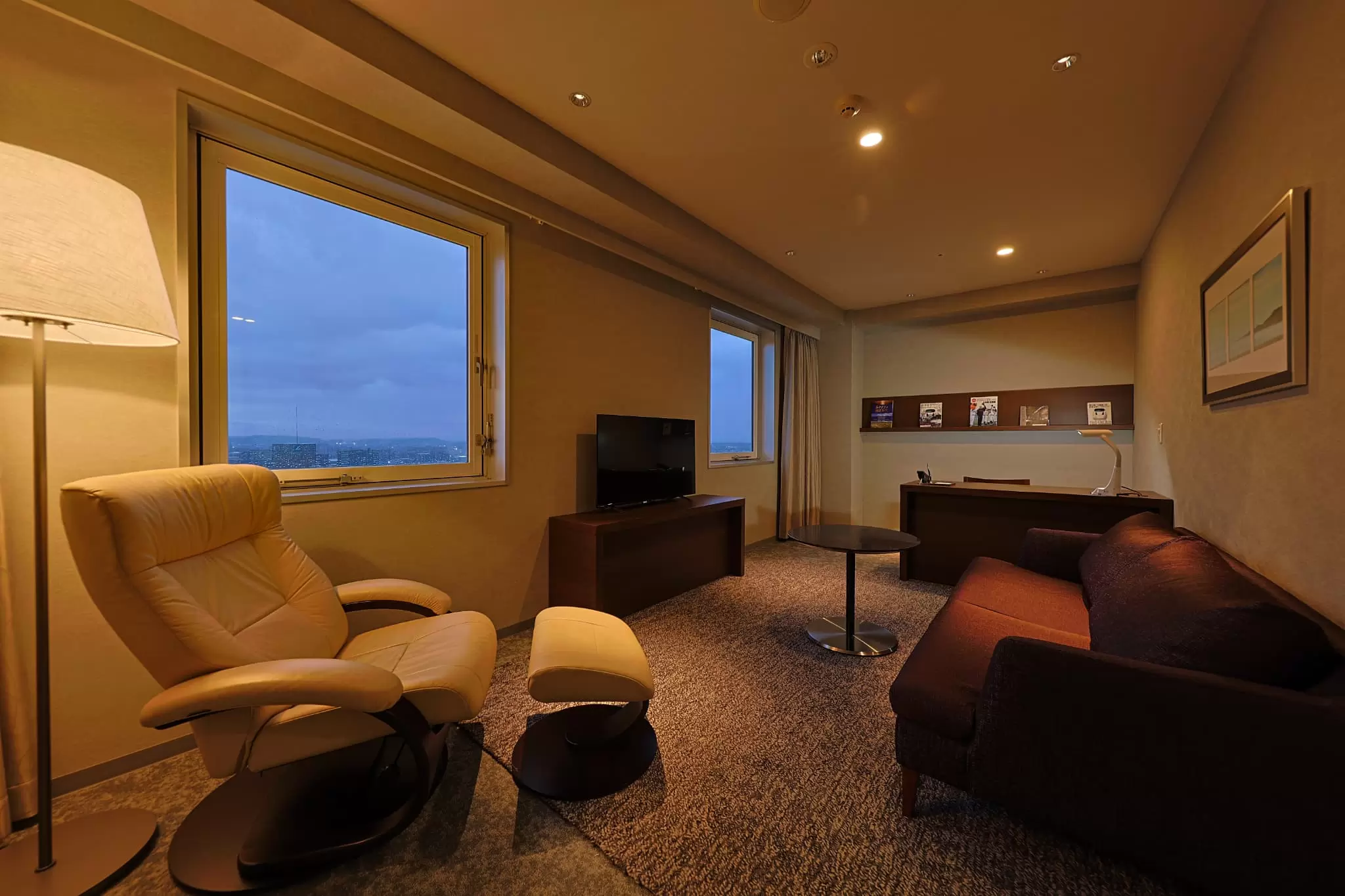 This spacious 50m² room is equipped with reclining chairs and other comfortable furniture for you to relax in. There is only one of these special rooms, making it the perfect place to stay for an important occasion.