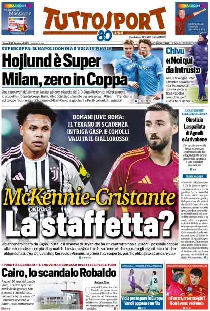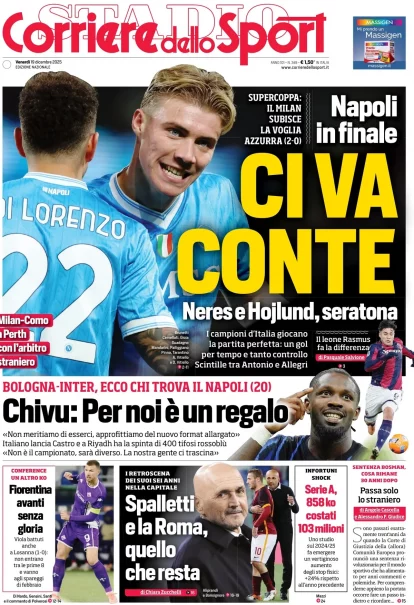 The other semifinal between Inter and Bologna will be played tomorrow, Friday, December 19, at the same venue.