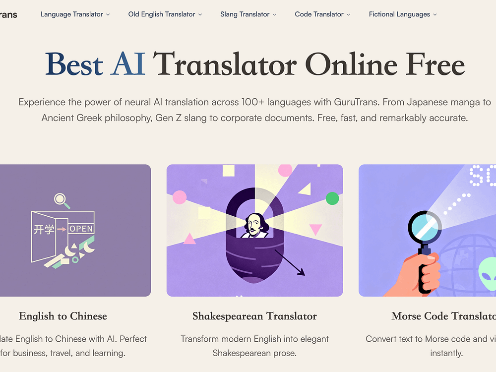 Use it to learn real-world phrases, translate menus on the go, or localize captions and scripts for global audiences. Explore specialty translators for Old English, Ancient Greek, and even Morse or binary, and get instant results with no signup.