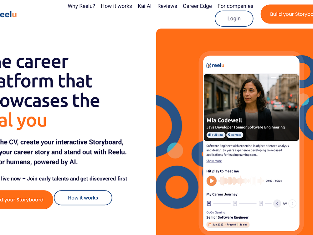 Reelu lets you replace a static CV with an interactive Storyboard that showcases your skills, projects, and personality using voice, images, and video. Upload your CV to jumpstart your profile, then use Kai, the AI career coach, to refine content, tailor applications, and surface strengths. As the community grows, Reelu will match talent with relevant opportunities so employers can discover you faster.