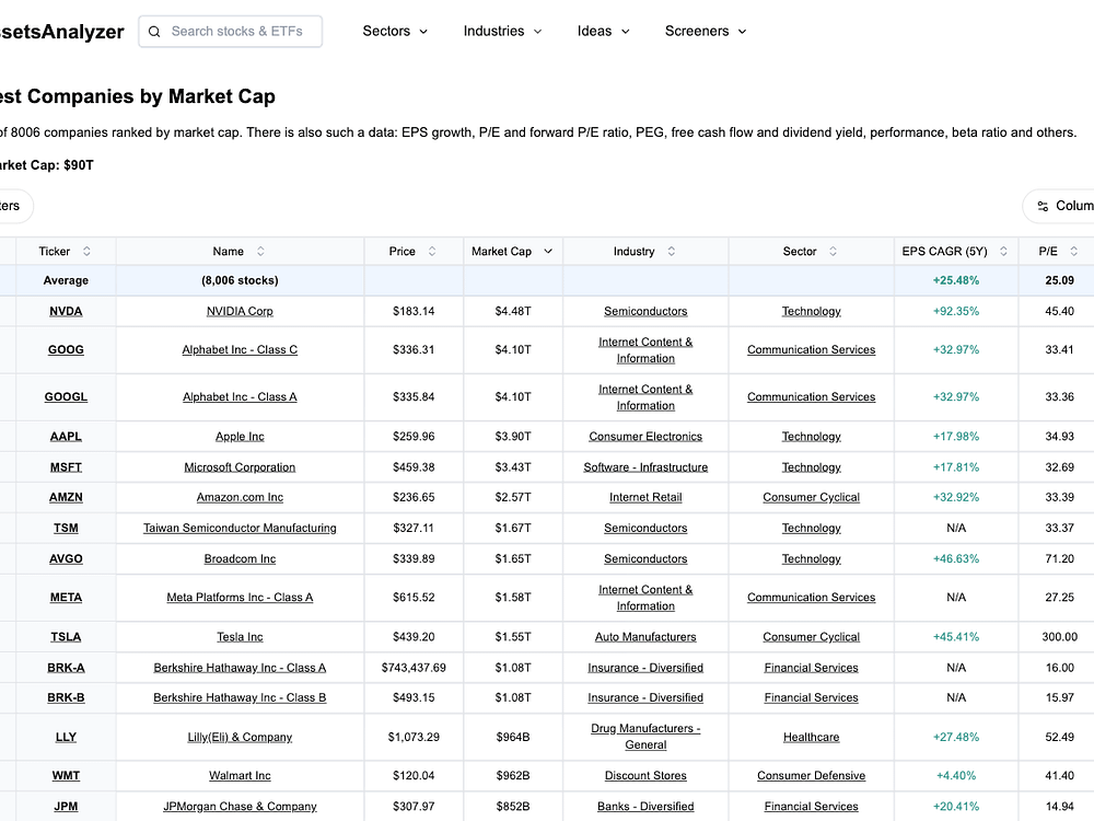 AssetsAnalyzer is a free investment research platform offering over 20 years of historical data for more than 8,000 stocks and 5,000 ETFs. Users can analyze prices, compare performance against the S&P 500, and explore detailed financial reports, including drawdowns, dividends, and key ratios like market cap and EPS. The platform features a stock screener with over 30 metrics and an ETF screener with more than 20 metrics, allowing users to quickly filter and sort investments. Discover correlations between stocks and ETFs to enhance diversification or find close alternatives. No paywalls. No sign-up. Just data.