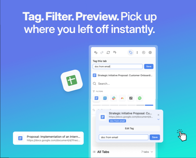 Newtab is a Chrome extension that automates proactive tab management. Duplicate tab notifications enable you to prevent tab chaos from happening in the first place. Background closures for inactive tabs intuitively cleans up your browser. Don't worry you can always find them again in the side panel ;) Search across all windows, tag tabs, control audio, filter and more. Everything you need to manage tab chaos without doing any actual management yourself.