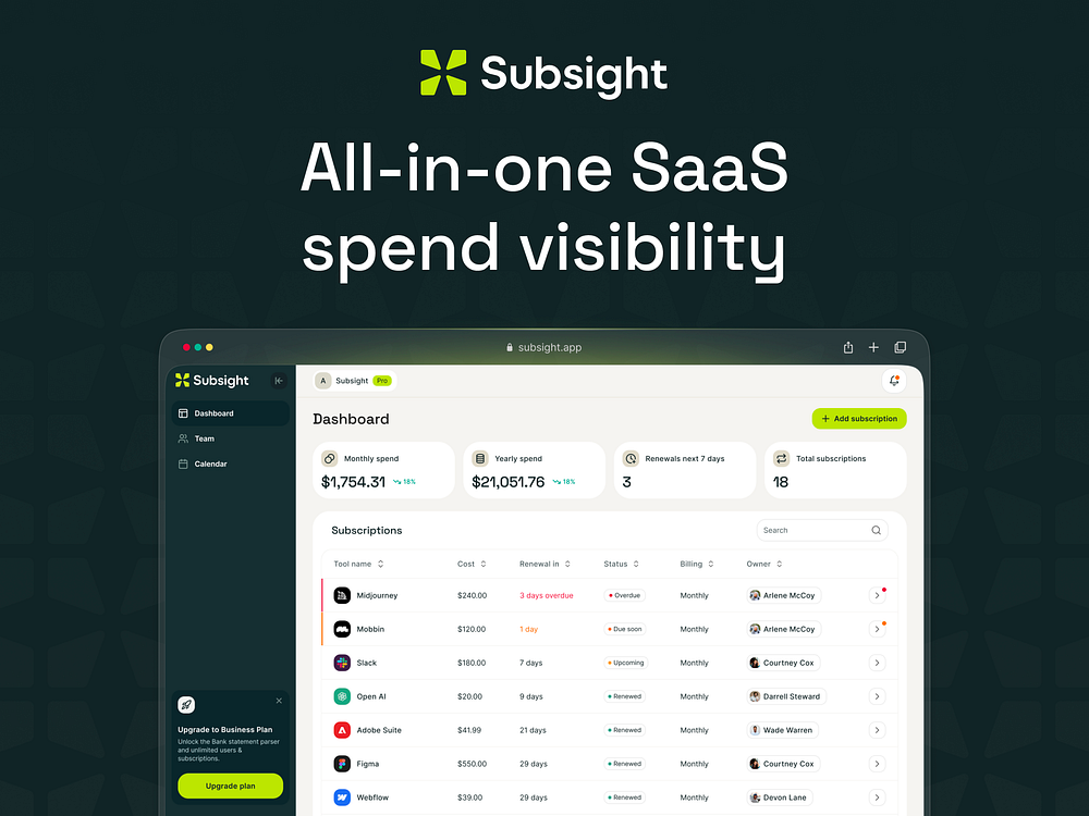 Subsight – Track team subscriptions and stop surprise renewals