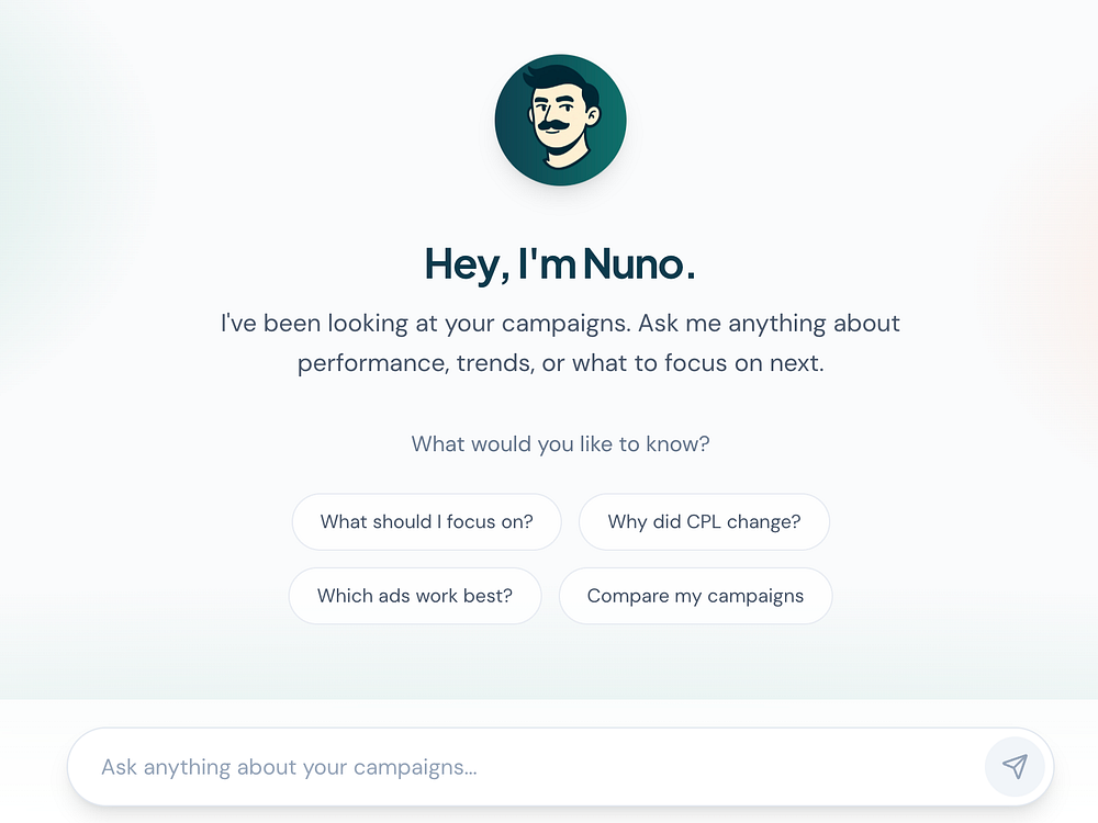 Nuanso connects to your Meta and Google ad accounts and delivers clear AI analysis through Nuno, allowing you to see what's working, what's not, and what to do next. It sends daily briefings to Slack or Teams, answers questions like why CPL spiked, and provides specific steps to improve your performance.