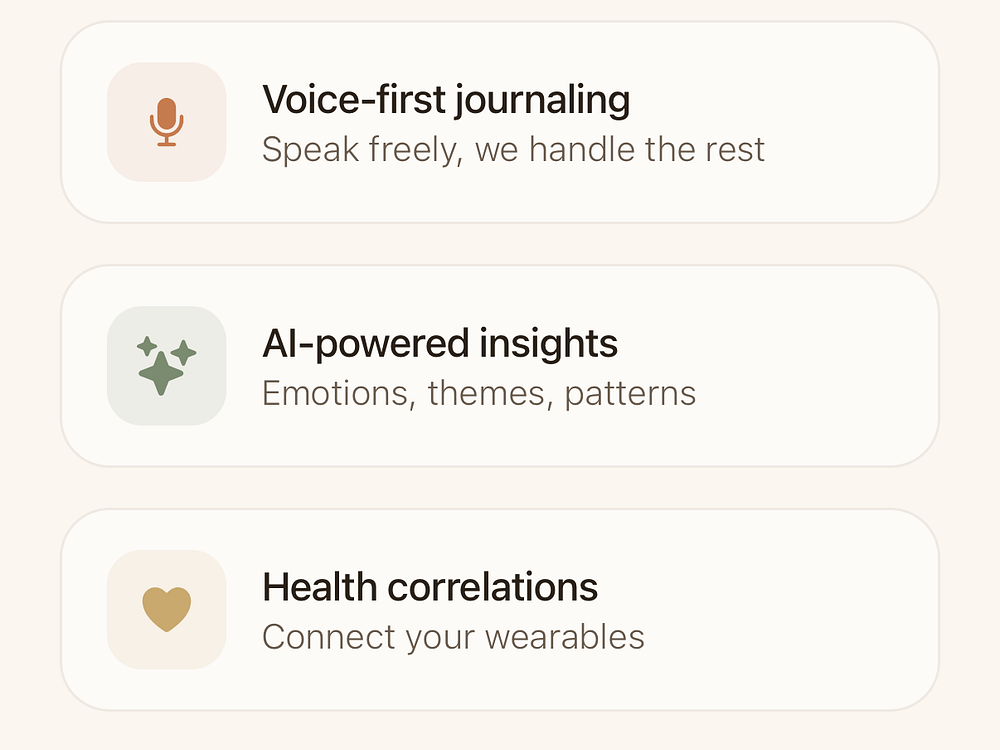 Photis is a voice-first gratitude journal that lets you speak entries instead of typing. It transcribes your reflections, tags emotions, extracts themes, and remembers people and goals to help you build a consistent practice. You can connect Oura Ring, Apple Watch, WHOOP, or Garmin via HealthKit to see how gratitude correlates with sleep, HRV, and recovery. Processing starts on-device, entries are encrypted, and you control your data. Now in iOS TestFlight beta.