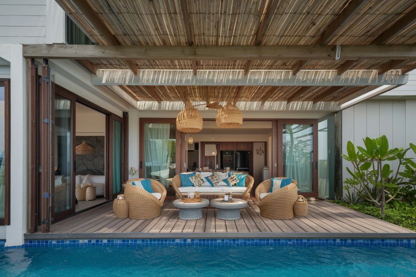 For families looking for even more space, the Chairman’s Penthouse Suite, measuring over 2,800 square feet, offers expansive living areas, a dramatic staircase, and three bedrooms, making it a perfect choice for large groups or extended families. These accommodations blend modern design with tropical aesthetics, ensuring that every stay is both comfortable and memorable.