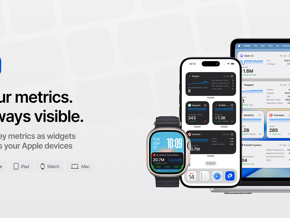 PulseKit turns your key metrics into widgets across your Apple devices. Instead of opening dashboards to check if something changed, the numbers you care about stay visible on your Home Screen. It works with tools like Product Hunt, LinkedIn, Discord, DeFiLlama, and more integrations are on the way. It’s not a dashboard replacement; it’s the layer before the dashboard.