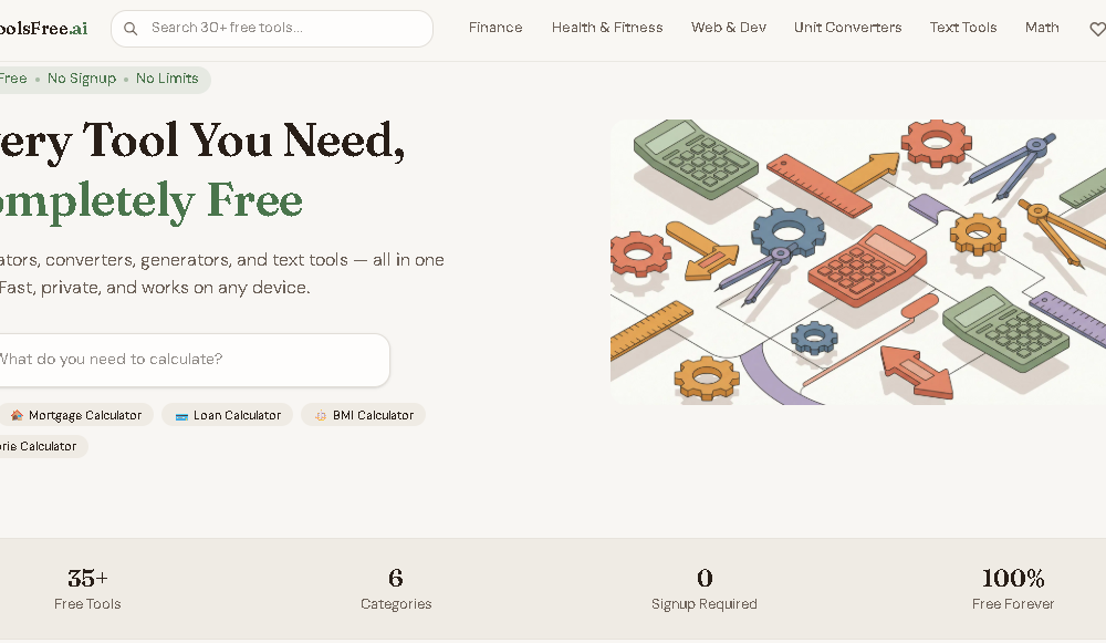 ToolsFree.ai – Calculators, converters, generators, and text tools β€” all in one place