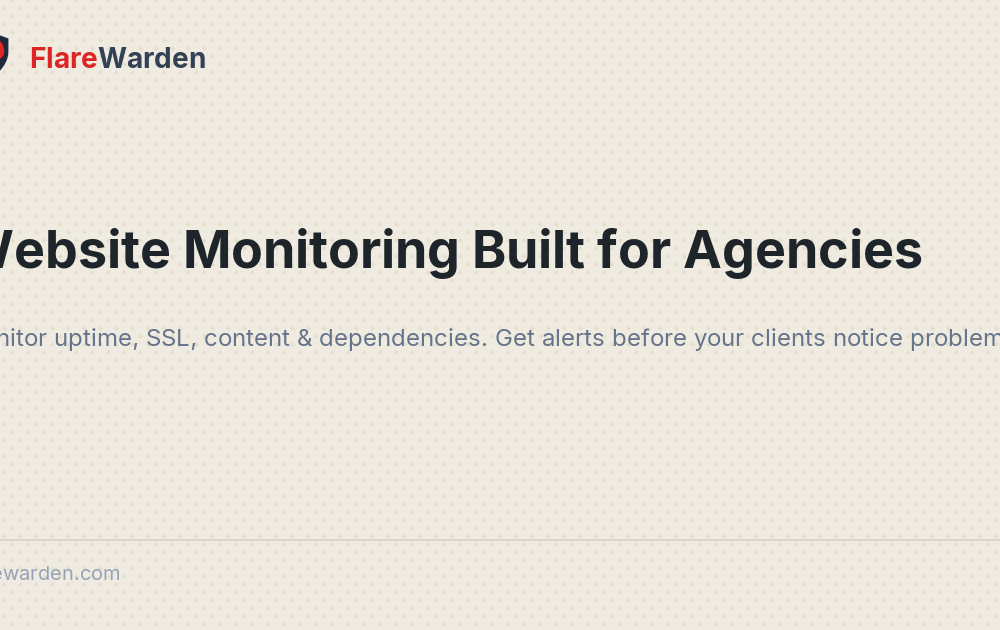 FlareWarden delivers multi-region website uptime monitoring, SSL tracking, content checks, and dependency monitoring, allowing you to see real issues and reduce false alarms. Smart Setup scans your site, links critical content and third-party services, and gets checks running in minutes.