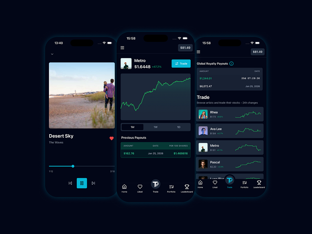 Tone is a music streaming and trading platform that gives artists and fans a direct stake in success. Artists earn higher, transparent streaming royalties, while fans can buy and trade shares tied to real royalty revenue. By linking investment to actual streaming performance, Tone aligns incentives and builds a fairer music economy. Discover artists, support their growth, and participate in the upside as their music gains traction.