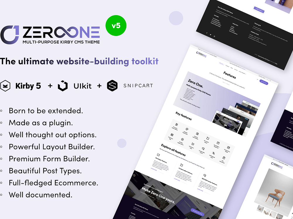 Build fast, beautiful, fully customizable websites without subscriptions, lock-in, or cloud-based limitations. Zero One turns Kirby CMS into a powerful self-hosted website builder, giving you the freedom, privacy, and control that SaaS platforms can’t offer. It includes a visual layout builder, form builder, header and footer builder, SEO tools, GDPR features, multilingual support, AI-ready integrations, and a flexible design system. Whether you're a freelancer, agency, or privacy-focused business, Zero One lets you create modern, scalable websites you can host anywhere with no monthly fees and no vendor lock-in.