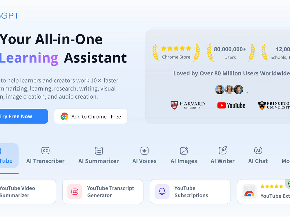 NoteGPT is an AI learning assistant for students, educators, professionals, and creators. It converts YouTube videos, lectures, meetings, and PDFs into concise notes and summaries, generates flashcards, and lets you chat with models like ChatGPT, Claude, Gemini, and DeepSeek. Use transcription, PDF translation, and writing helpers to research and draft faster. You can create podcasts with text-to-speech and voice cloning, and design or edit images for slides and visuals. It is available on web and Chrome with strong privacy safeguards.