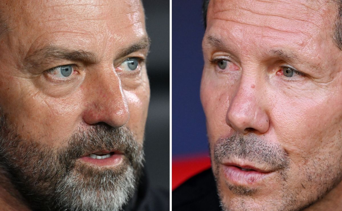 Hansi Flick Manager of FC Barcelona (L) and Diego Simeone, Head Coach of Atletico de Madrid