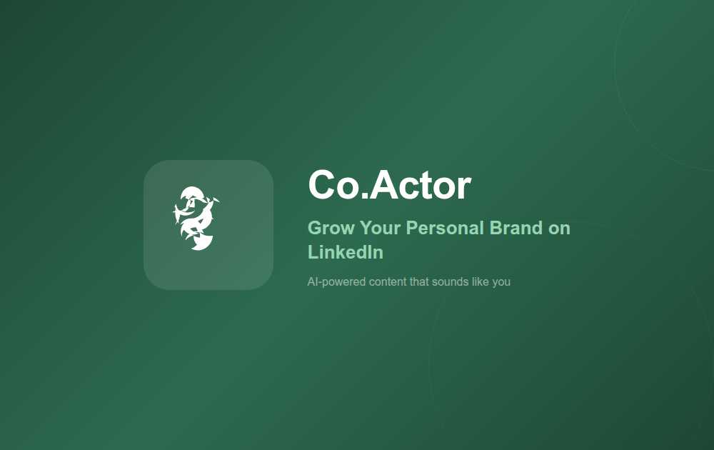 Co.Actor helps you grow your personal brand on LinkedIn by learning your tone of voice from your posts and every edit. It surfaces daily, relevant post ideas from industry news and your network, then drafts content that sounds like you and lets you schedule directly to LinkedIn.