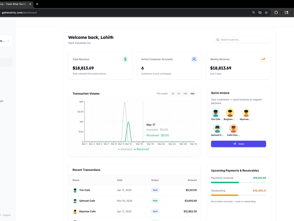 Receivly β Send invoices, track payments, and automate reminders