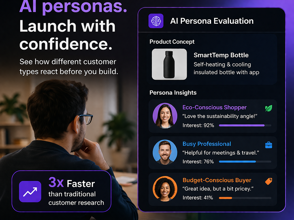 Simmerce lets e-commerce teams run synthetic customer simulations to validate features before launch. It generates diverse shopper personasβ€”budget shoppers, brand loyalists, impulse buyers, and researchersβ€”and simulates how they search, browse, and convert to reveal friction and opportunities. Upload a product pages, search results, or recommendations and get insights in minutes, including which segments convert, where users get stuck, and what content is missing. Use pay-as-you-go credits to test ideas fast and ship with confidence.