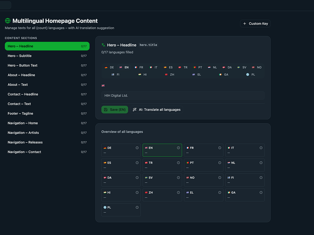 CloverNut centralizes operations for music labels, publishers, workshops, and other creative businesses. Manage artists, products, and releases; build public homepages; and support eight languages with real-time API sync. Handle streaming links for Spotify and Apple Music, create press kits, and control team access with roles. Flexible plans scale from solo creators to enterprises.