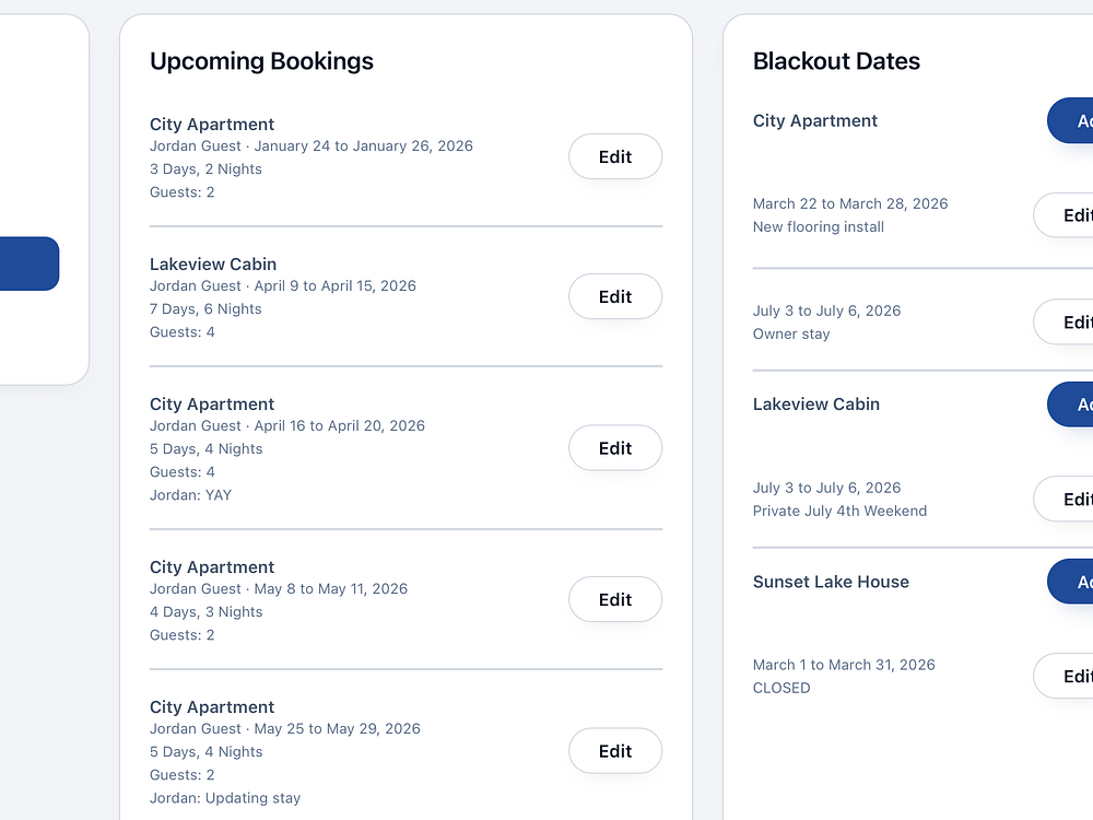 Stay the Week helps homeowners privately share lake houses, cabins, beach houses, ski condos, and second homes with friends and family. Invite guests to a private booking page to see availability, request dates, and receive automatic confirmations and reminders. Owners control availability, blackout dates, and access from a simple dashboard, with directions and property info attached to each booking, replacing messy text threads with a clean, controlled process.