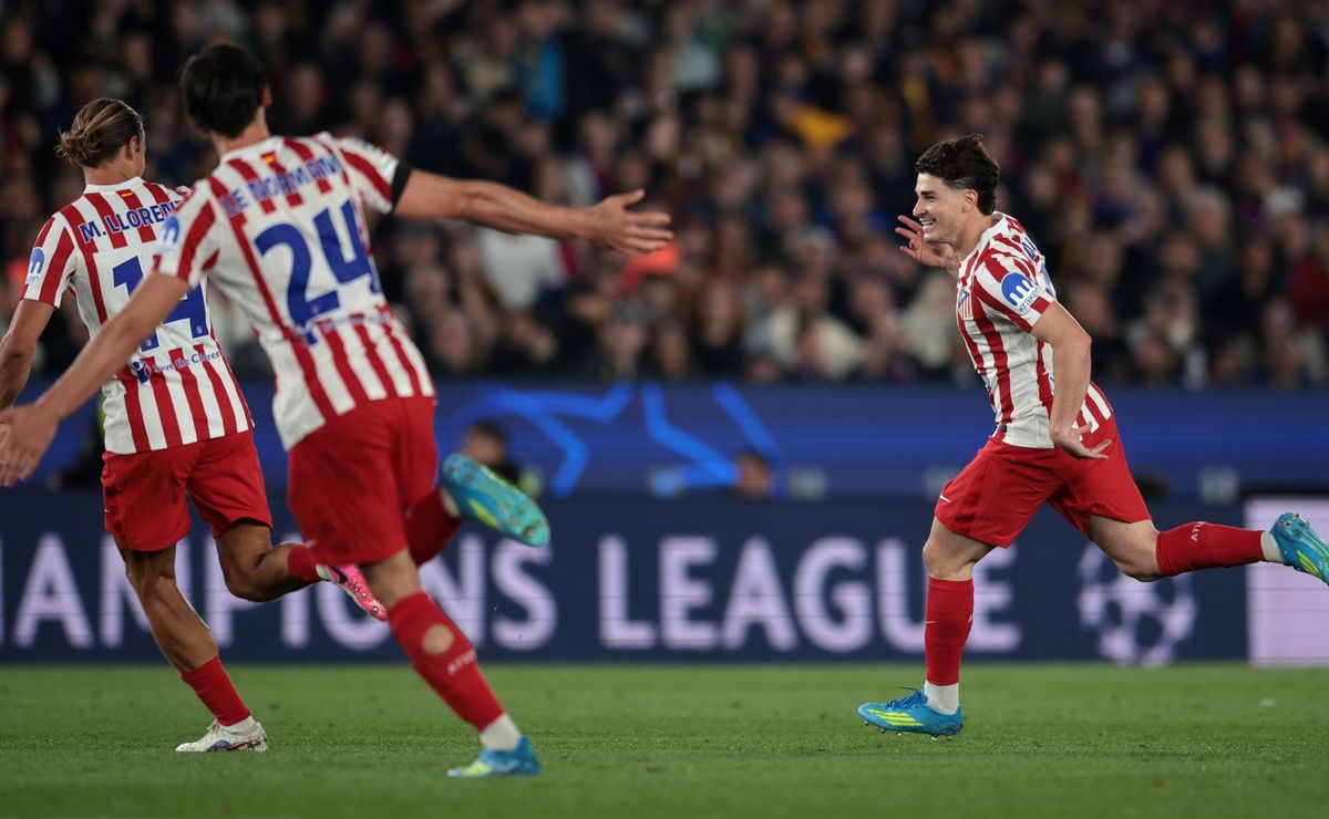 Julian Alvarez of Atletico de Madrid celebrates scoring against FC Barcelona.