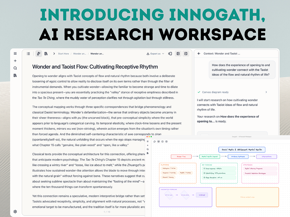 Innogath is a research workspace for people who have hit a wall with AI chatbots. Ask a question and get a structured report with clickable citations, not a wall of text. Every finding can branch into a sub-topic, and the tool auto-draws a knowledge map so you can see how your research fits together.