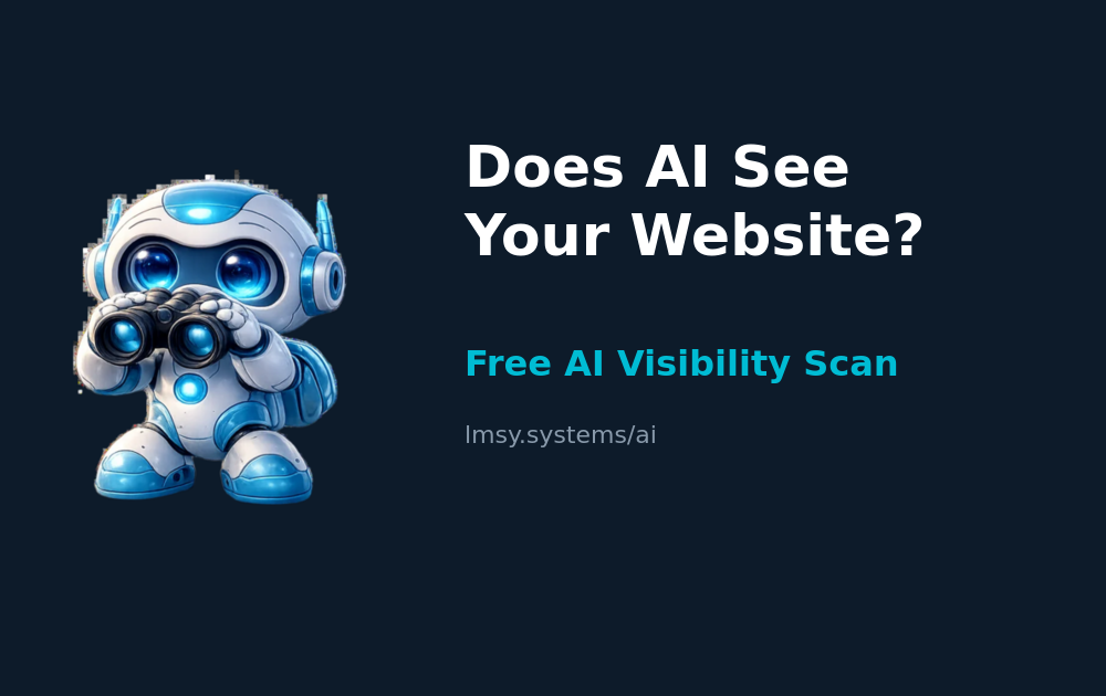 LMSY shows why your website isnβt recommended by AI and where youβre losing customers. Most sites are visible but not selected because AI canβt clearly understand or verify them. LMSY scans your domain and reveals inconsistent messaging, missing entities, weak signals, and gaps in structured answers. It shows how AI interprets your site and why competitors get recommended instead. Then you get clear, actionable steps to fix your messaging, improve consistency, and become easier for AI to reuse and recommend.