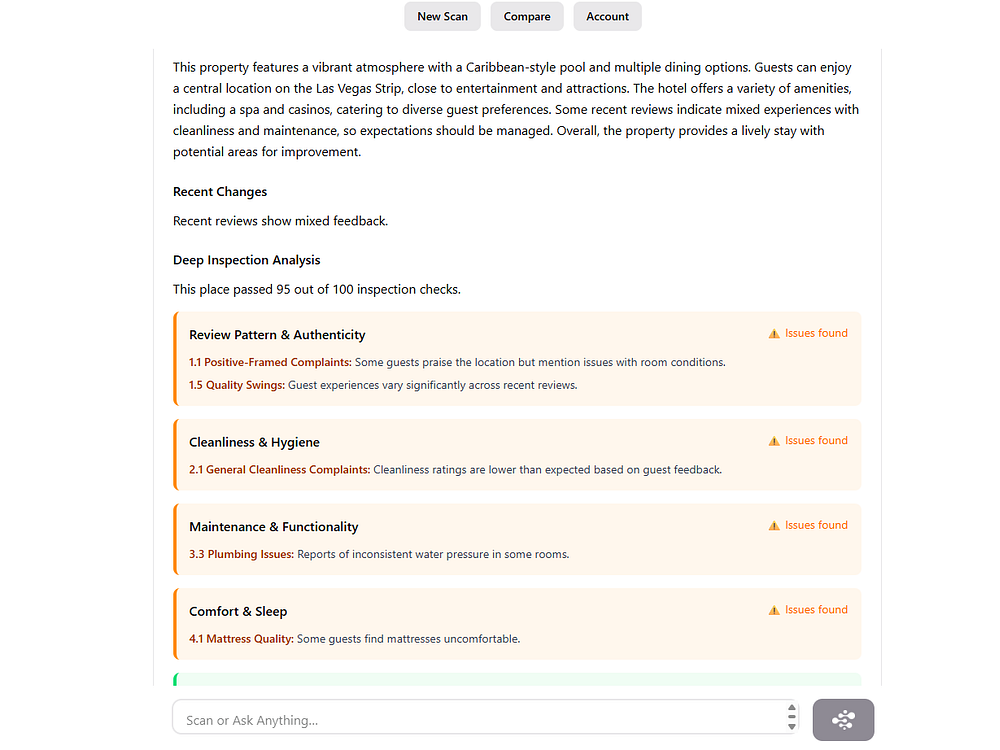 BookYolo is an AI travel companion that inspects vacation rentals and hotels before you book. Paste any listing link and it runs over 100 checks across reviews, photos, and policies to surface red flags like noise, cleanliness, hidden fees, and host reliability. It labels results from Outstanding Stay to A Bit Risky, answers your questions, tracks changes, and lets you compare options side by side. Use it free on web or iPhone, with an optional low-cost premium for heavy scanners, so you choose stays that truly match expectations.