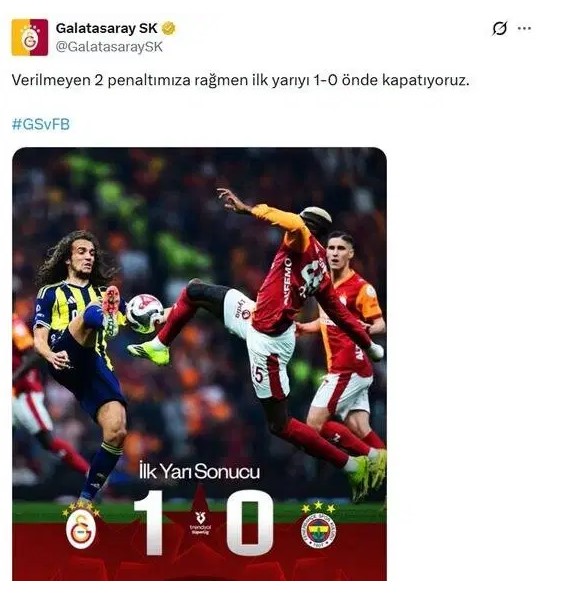 Öte yandan maçtan sonra Galatasaray cephesinden peş peşe paylaşımlar gelmeye devam etti. En dikkat çeken paylaşım ise Okan Buruk'un oğlu Ali Yiğit Buruk'tan geldi.