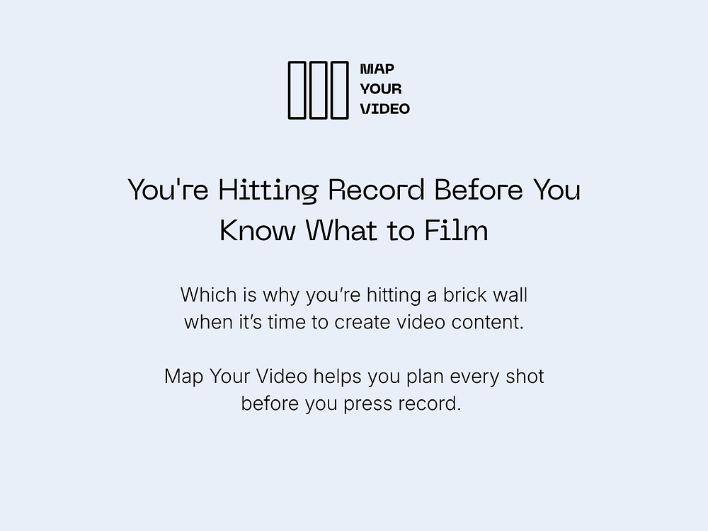 Map Your Video is a video planning tool that helps short-form video creators turn their ideas into a clear, structured shot list before they pick up their phone. Instead of hitting record and hoping for the best, you map out each frame of your Reel or Short so you know exactly what to film and in what order. When the map is done, you open your shot list and film scene by scene. It's built for ADHD solopreneurs who have many ideas but get stuck in the stall-record-delete loop. The problem was never the idea, but not knowing what to film. Map Your Video fixes that before you press record.